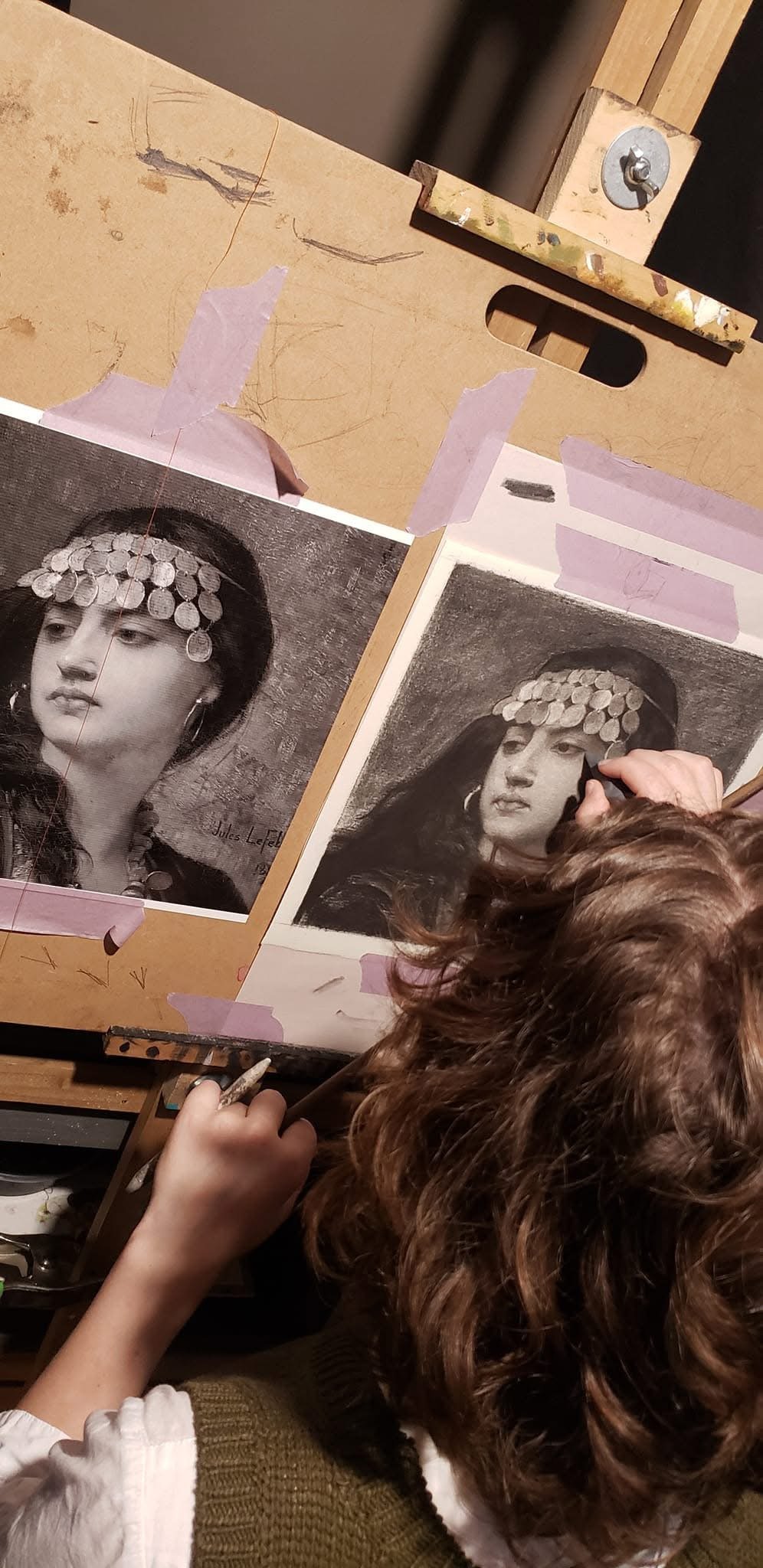 About the Artist I’m Mary Renée! I’m an emerging artist making naturalistic fine art in traditional mediums. I love to make my art about people! Naturalistic or representational art makes use of models and props to create vibrant paintings and drawings with depth. I use traditional mediums such as oil paints, charcoal, pastel, and graphite. As a person myself, I’m always curious to know more about people across time periods and cultures! Thank you! There is a lot more work to be made, and I hope to share more with you soon, so stay tuned! Portfolio Weddings Commissions